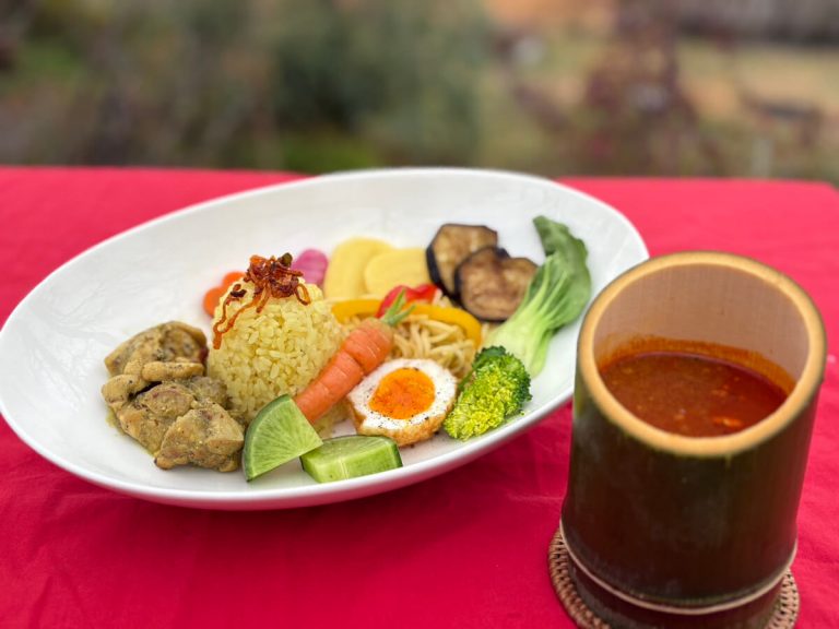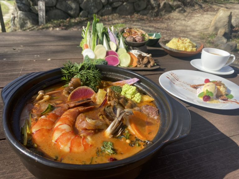 森のレストラン ラッキーガーデンの「羊エリア」は自然の中でカフェやお食事を楽しめます。