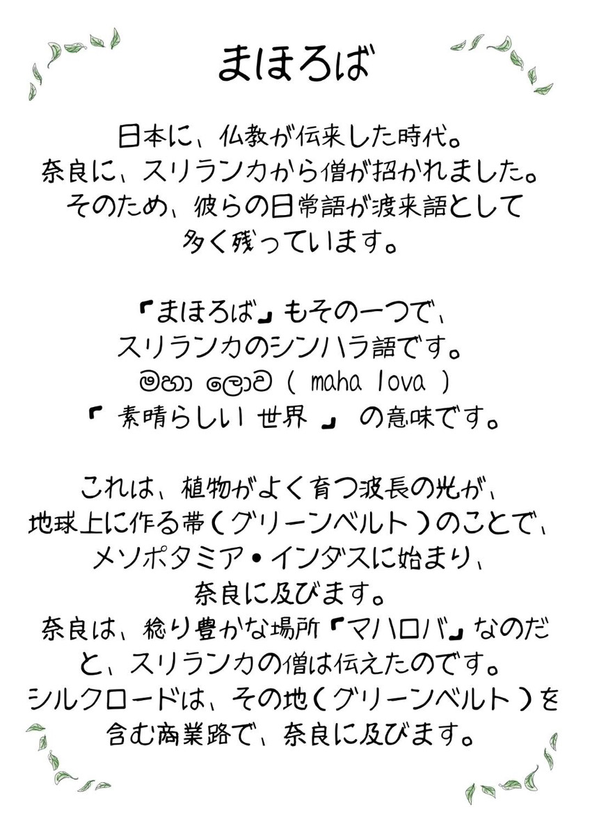 奈良は、稔り豊かな場所「マハロバ」なのだと、スリランカの僧は伝えたのです。
